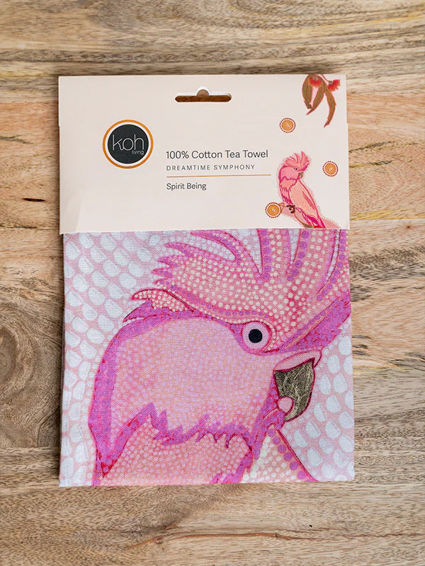 Art has a place in every room, even the kitchen. Bring some colour and style into the heart of your home with our 100% cotton tea towels from our Dreamtime Symphony range. Featuring artwork, Our Spirit Being, from talented First Nations Artist Domica Hill. You can use these tea towels to dry your dishes, add some colour to your kitchen or even frame and have as an art piece in your home.