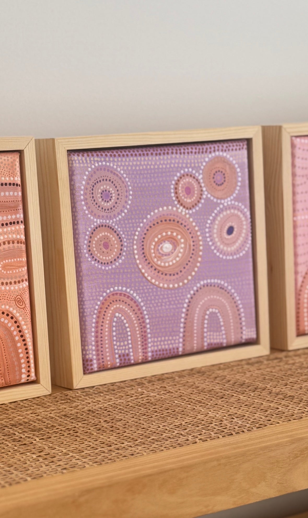 Circles of connection rise above soft hills, symbolising stories shared, families united, and the quiet strength of community under an endless sky.