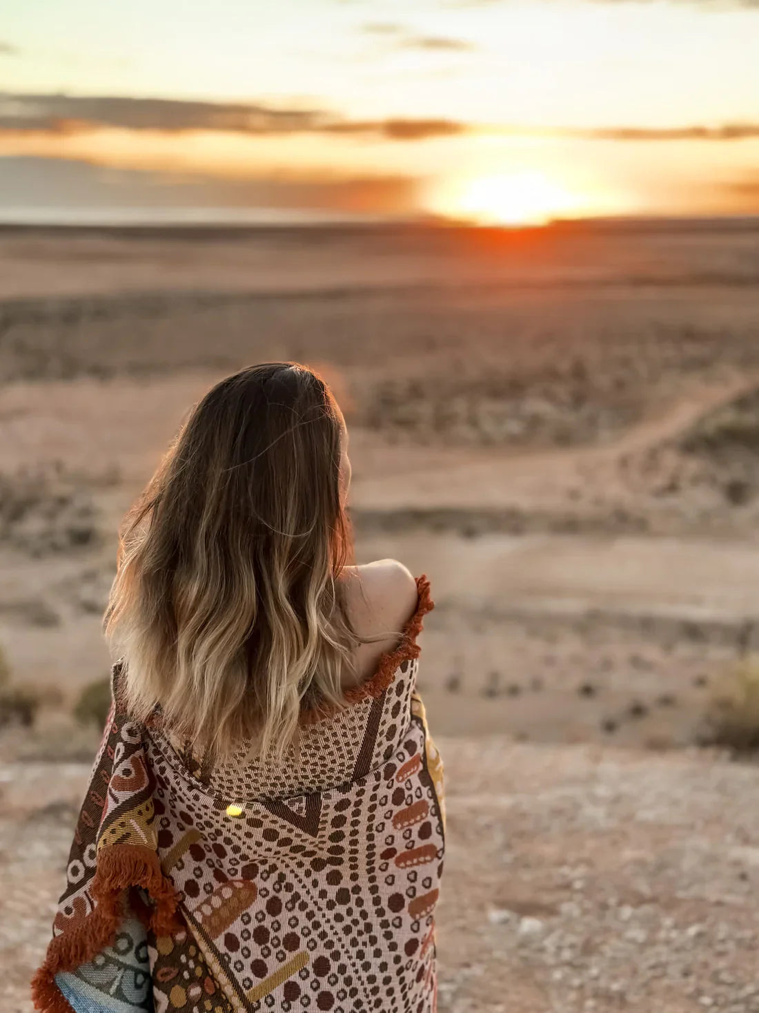 - A beautiful thick weave with the added detail of a orange-rust fringing sewn on